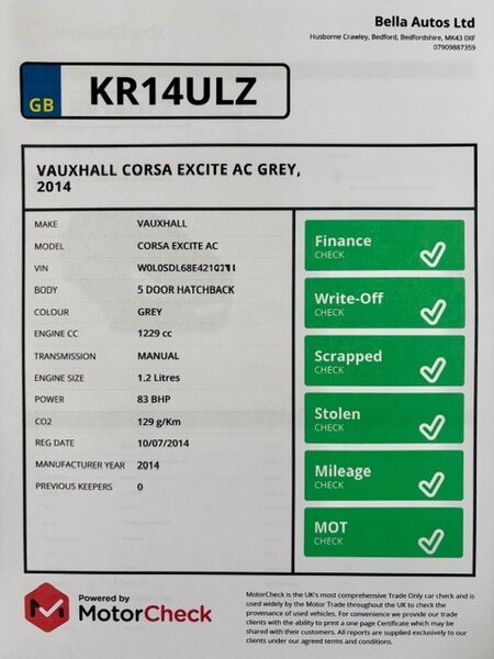 * HPI & Accident Clear With Full Supporting MotorCheck Dealer Reports