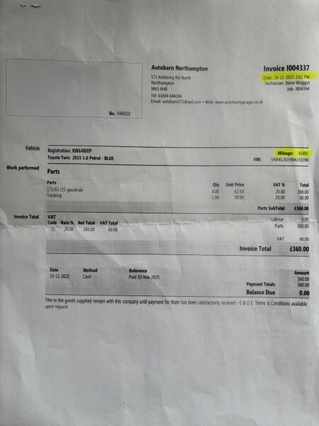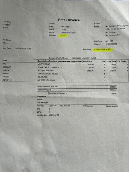 * Air Con Regas 27/02/26 @ 44,427 Miles