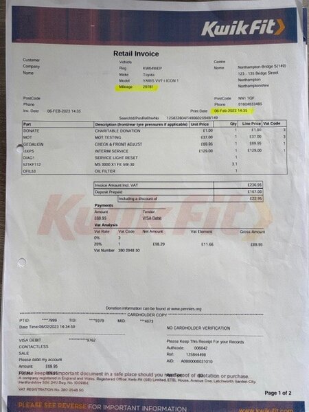 * 12 Months Advisory Free MOT Until 05/02/2027